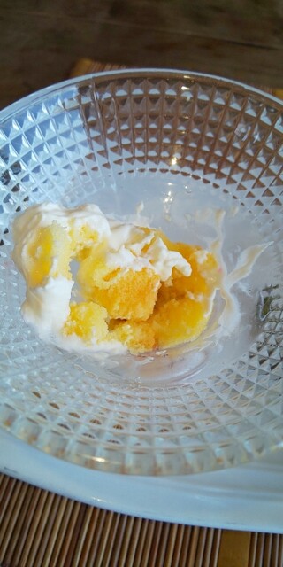 手作りデザートの下部~林檎煮、スポンジ(R5.4.27撮影)