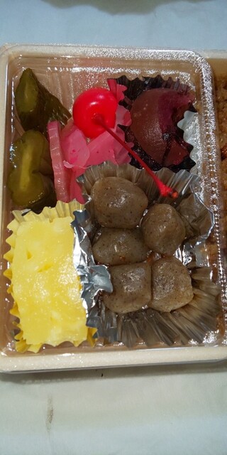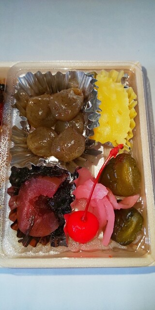 九十九鶏弁当の定番の副菜(R2.5.1撮影)