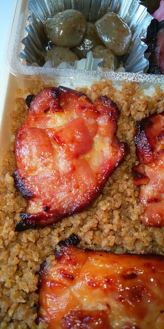 九十九鶏弁当の鶏肉の照り焼き(R2.5.1撮影)