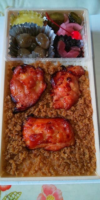 九十九鶏弁当-大盛りには鶏照焼きが3個(R5.3.17撮影)