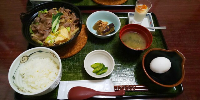 一般的なすき焼を、ランチ用にアレンジした様な、つゆもたっぷりの鍋です。