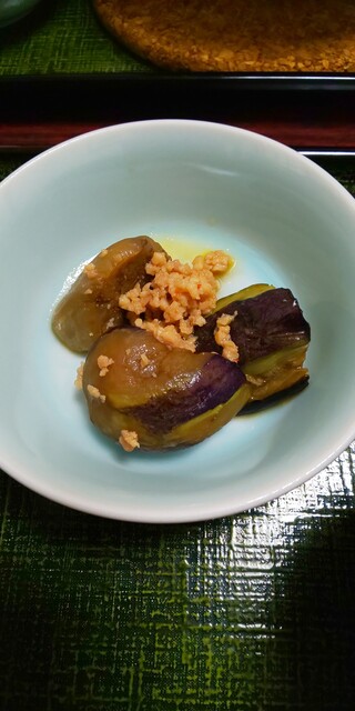 牛鍋に付く茄子のそぼろ煮(R4.9.7撮影)