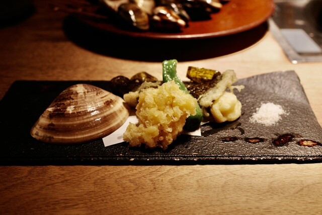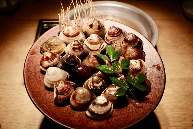中目黒の喧騒から少し離れた場所にある割烹藤は、桑名産はまぐりのしゃぶしゃぶを軸にコースを組み立てる店だ。お造りで流れを整え、焼き蛤と天ぷらで貝の表情を変えてくる。途中に挟まる唐墨蕎麦が、コース全体に一度リズムを入れる。締めの雑炊まで旨みを回収しきる構成で、通して食べて納得感が残る。