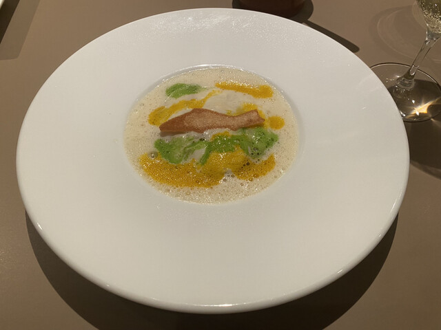 インド料理とフレンチにとどまらず中東や南米の料理も含めてフュージョンが色々と出てきます。調理レベルも高いと感じます。ワインのセレクションもペアリングされたグラスが選べて大変楽しめます。接客も好みで気が利いているけども適度にくだけた対応が良いです。