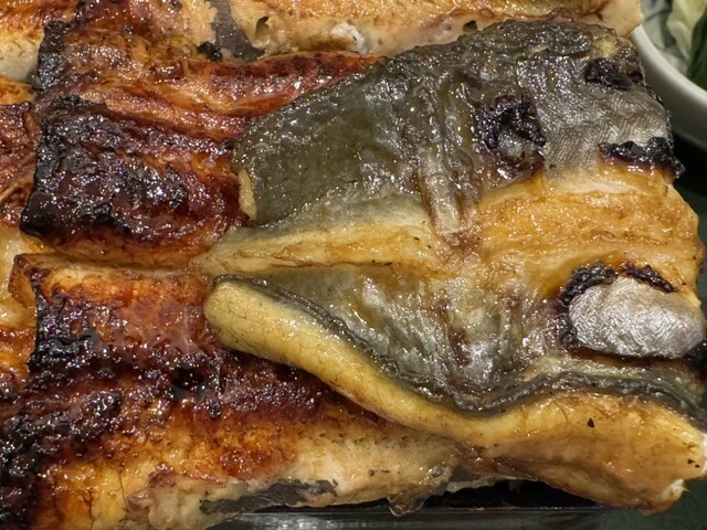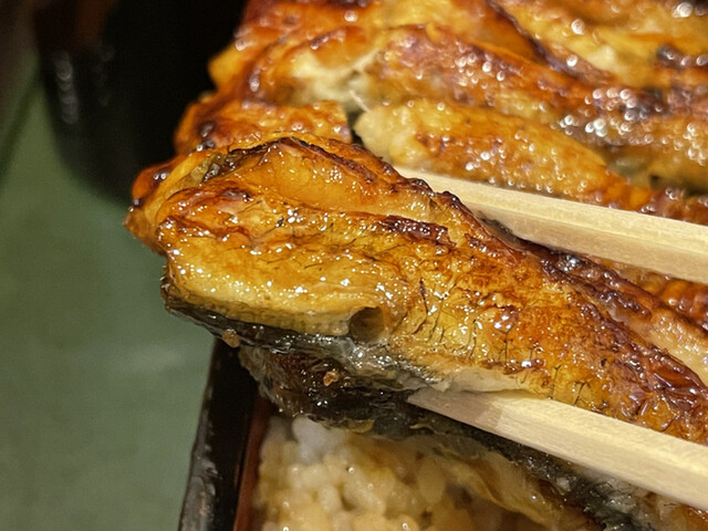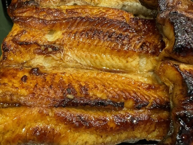 折り畳まれた高密度の鰻の蒲焼きがご機嫌よう。