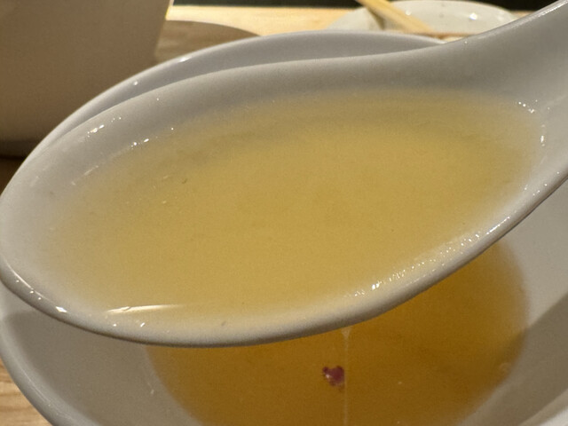 スープのいろんな出汁の香りがフワッと立った後に、分厚いけど優しい旨味が追いかけてくる。