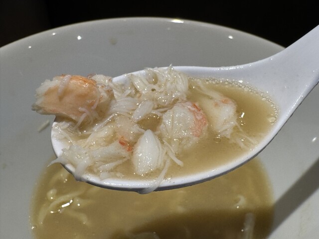 ピロピロ麺が蟹の旨みをまとって、一気に啜るとスープが気化して風味が更に増して、ガツンとくる蟹の旨みで脳内蟹だらけ。