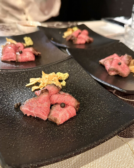 黒毛和牛ヒウチのローストビーフには鰆とボラの白子も勢揃い