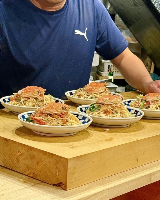 香箱ガニに丸々1杯にカニパスタに,脂の乗ったヤイトガツオ等いつにも増して食材が豪華