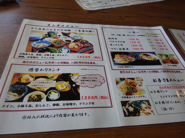 ランチは他に週替わりランチが1200円~、1000円で丼の定食もあるようです。