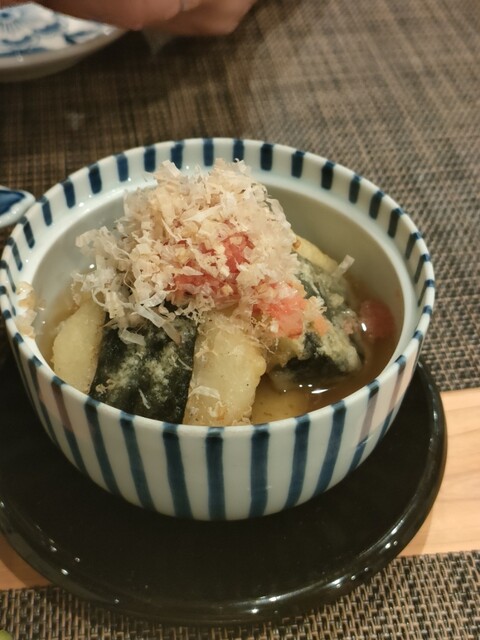 自家製ひろうすを食べたらひろうすはもちろんだけど中のナスが美味しすぎてナスの揚げ浸しを別にお願いしてしまうほど。濃くないけど出汁の味がしっか〜り染み込んだナスはシンプルだけど最高に好みの味でした。