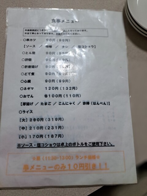 串カツ・とん焼き・肝焼き・どて煮・心臓・ネギマ。