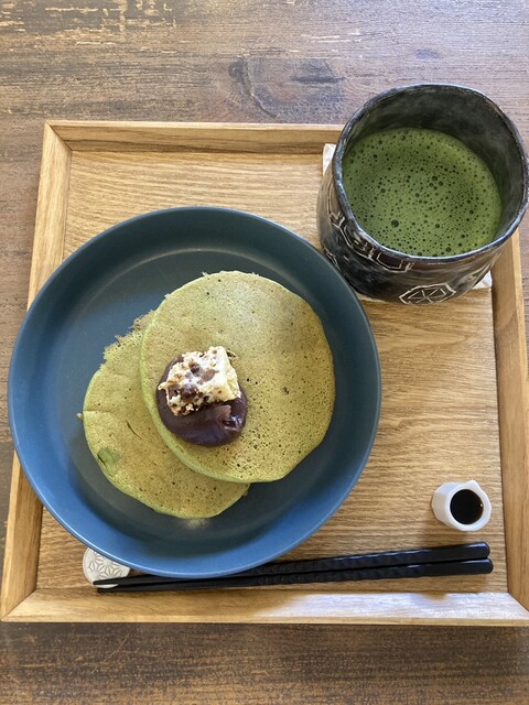 抹茶とあんこに黒糖ソースとバターをかけていただく。