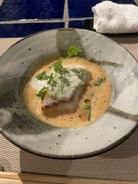 シェフの厳選ディナーのコースをいただきました。4人で掘りごたつ式の個室を利用、個室料は1人500円ですが、蔵の中に設られた広々としたお部屋で特別感がありました。お料理は一品ごとに優しい味で、大盛り過ぎず、量もちょうどいい感じでした。フレンチですが、お箸でいただくスタイルで、器やお皿は和の陶器が使われています。食事に合わせてワインをいただきましたが、カジュアルに楽しむことができました。お値段もそれほど張らず、気軽だけれど特別な機会に利用するのにはとてもいいと思います。