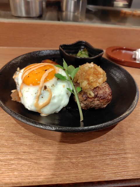 ハンバーグランチ(1,300円)に目玉焼き(150円)トッピング、ソースは和風、シャリアピン。