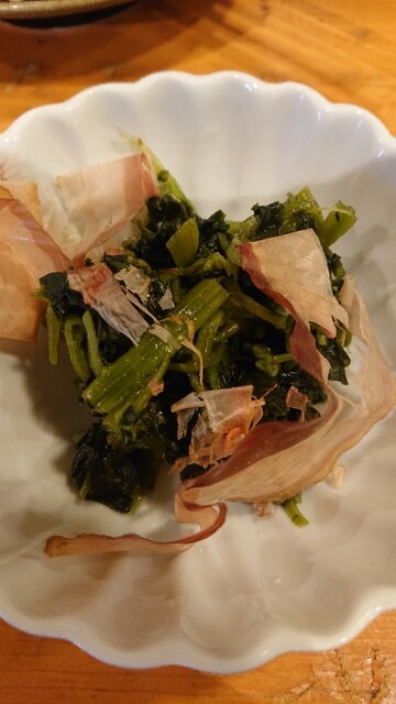 ワサビの風味がツーンと来る。お浸しをワサビで会えるとこんな感じ。たまらん。