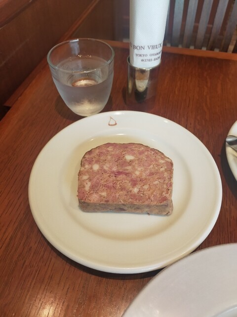 イートイン用に「パテ・ド・カンパーニュ」「ジュー・ド・ブッフ(牛頬肉の赤ワイン煮込み)」「パン・トラディショネル」持ち帰り用に、豚肉の粗挽きソーセージを購入。