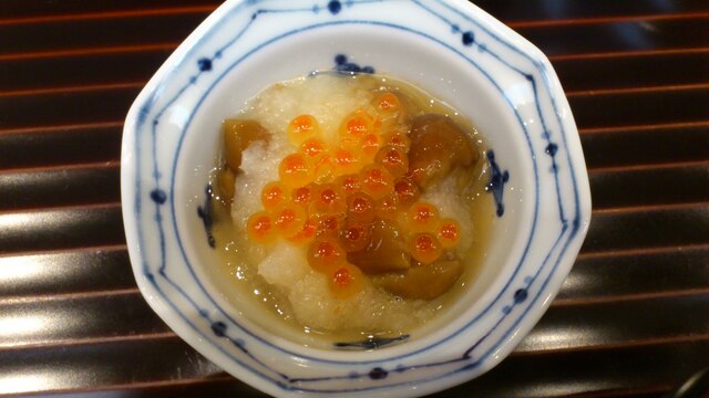 いくらとなめこ卸しはひんやり冷たく、なめこのぬるっとした食感と大根おろし、いくらがとてもあっていて、スルッと口の中に入っていきました。お出汁が効いていて大根も辛くなくおいしかったです!!!