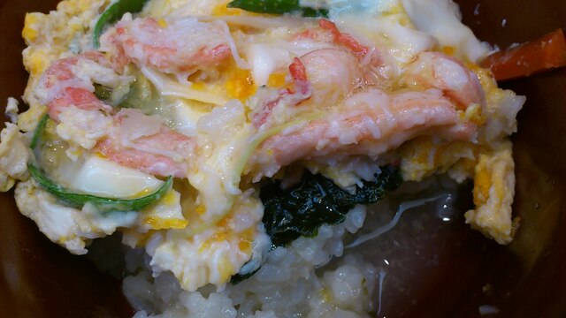 蟹玉〆丼は蟹身が贅沢に何本も入っています。とろとろ過ぎず、固めすぎずの絶妙な卵でふんわりとしていて、お出汁の風味がすごくよかったです(*´艸`*)彩りもきれいで、視覚でも楽しめました。
