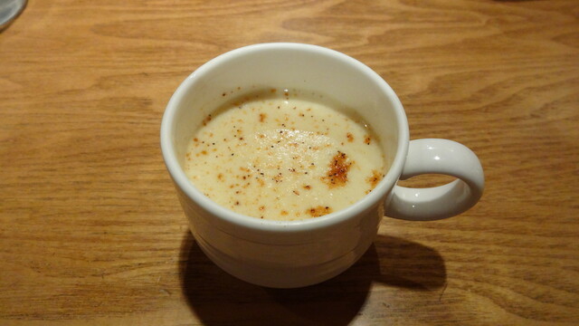 初めにエスプレッソいれるぐらいの大きさのカップのコーンポタージュが来ました。