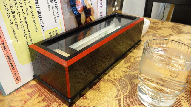 烏龍茶を飲みながらあたりを見渡すと面白いことに箸入れが和風ww