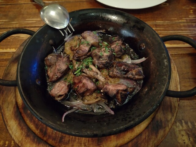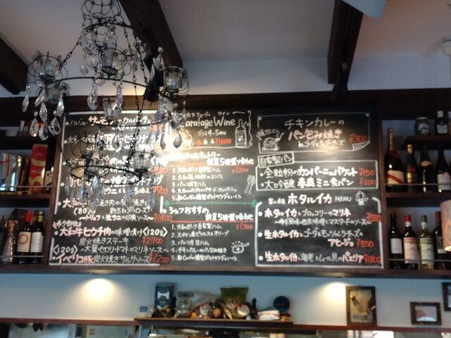 前菜とカレーパン、メニューにはないけど、黒板に書いてある物の方が旬なのかなあと思い、新玉ねぎやホタルイカを使ったものやパエリアを注文しました。