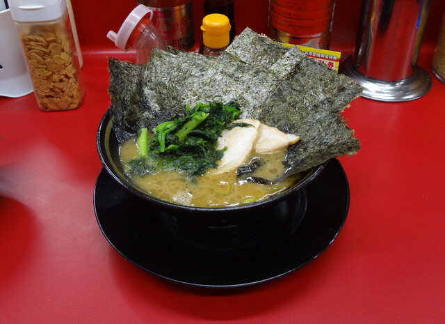 ラーメン ( ノーマル 、 青菜増し ) 680円 + 100円