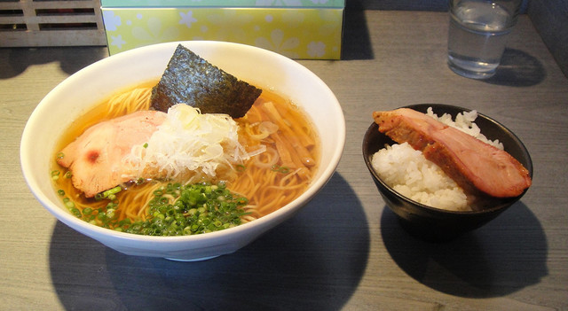 喜乃壺 煮干蕎麦(醤油、細麺、バラチャーシュー)750円、白飯 100円