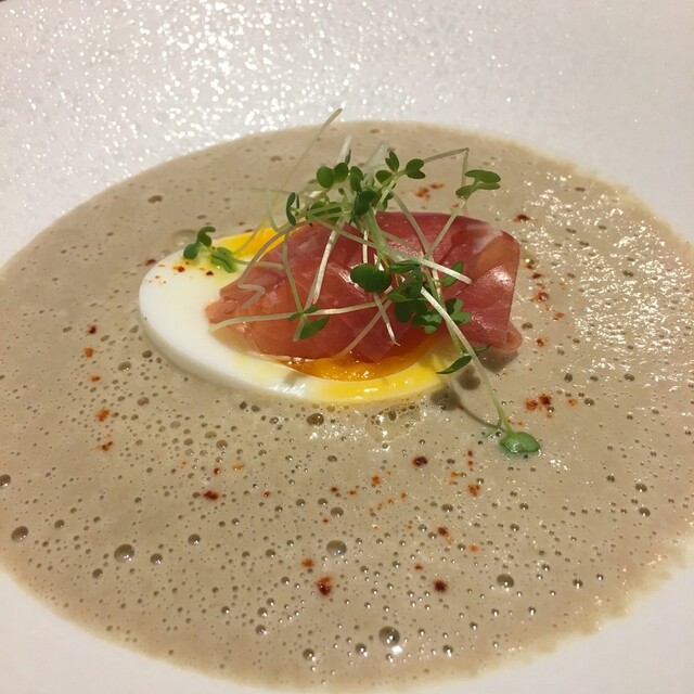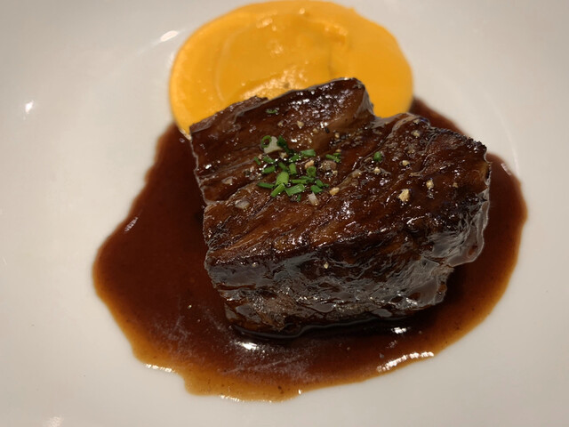 こう書くとコスパ悪そうに思えますが、全くそんなことありません。先ず、今日は前菜としてマッシュルームのスープが出てきました。繊細な味付けに感動です。メインは選べて、私はスズキのポワレ、母は牛頰肉の煮込みにしました。やや塩気が強い気もしましたが手間がかけてあるのが感じられる深みのある味わいで大変美味しかったです。