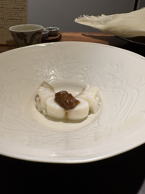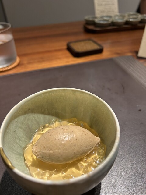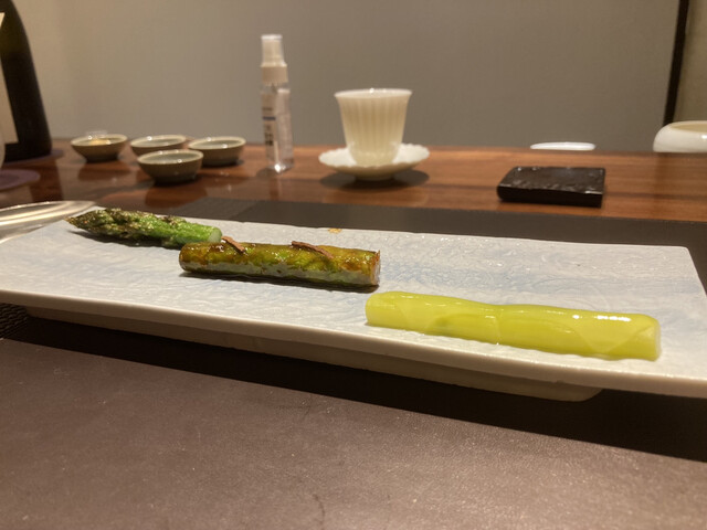 いつものアスパラ一本。本日のハイライトは喜界島のゴマ。キャビアより高いというゴマ。ゴマ農家の息子が星付きの店全部に飛び込み営業してるらしい。いい話。