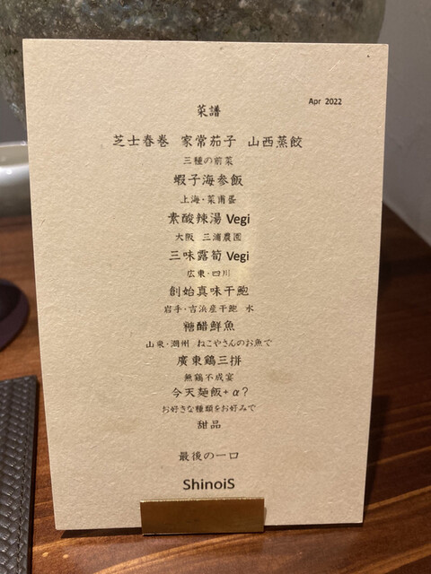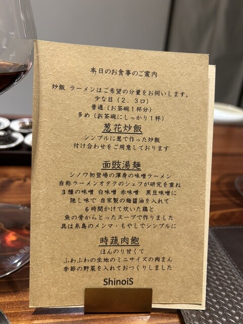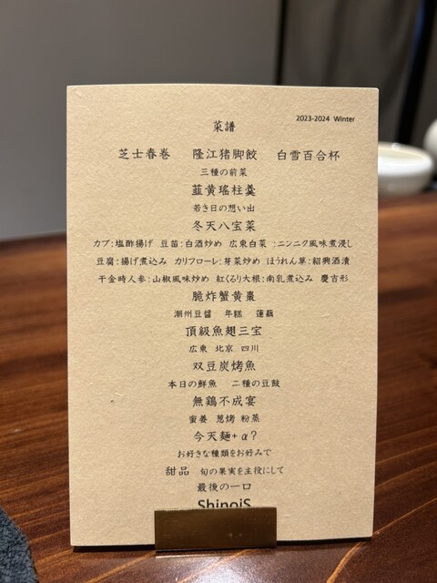 篠原シェフ曰く「今日は中国料理のいいところも悪いところも全部飲み込んだ特別料理の数々をお出しします」と。