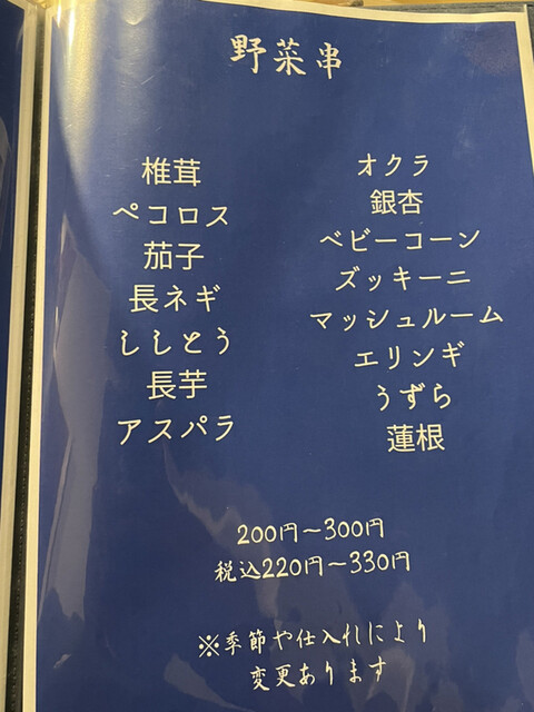 長いも¥352.袖¥385.ちょうちん¥495.うずら¥418