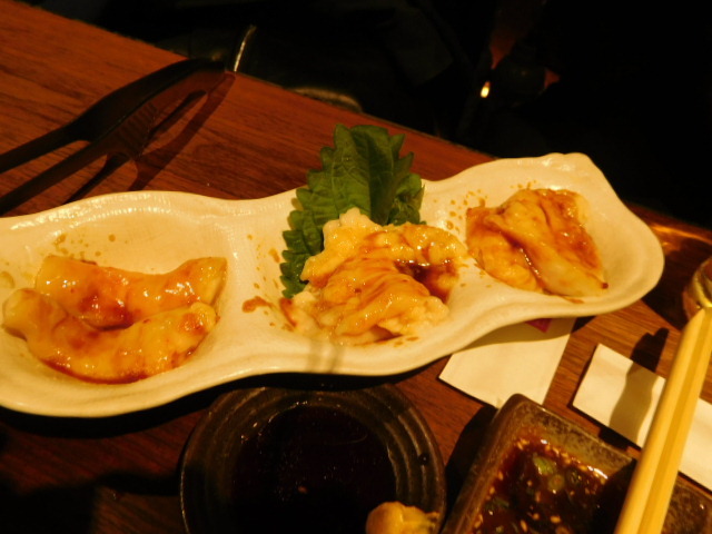 ハラミ、塩上ミノ、テツ3種盛合せ 、心残り、 塩ロース