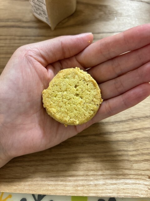 塩は塩味が程よく、食感は噛むとサクッとした後はホロホロと崩れていき、口の中で溶けていきます。一口サイズで食べやすいです。