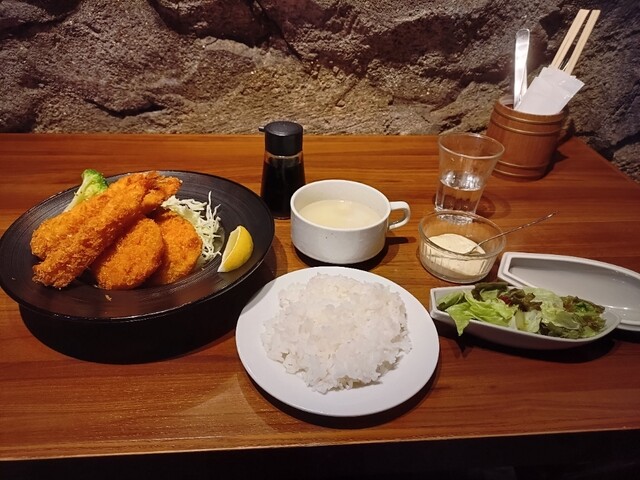 エビフライ2本、クリームコロッケ、白身魚のフライ、メンチカツとボリューム満点。