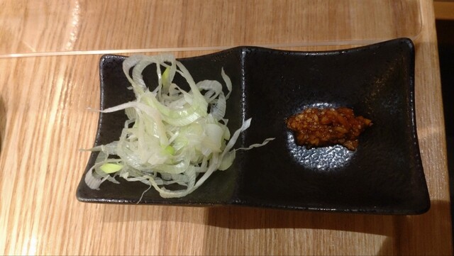 ほどなくして、薬味のねぎとニンニク醤油