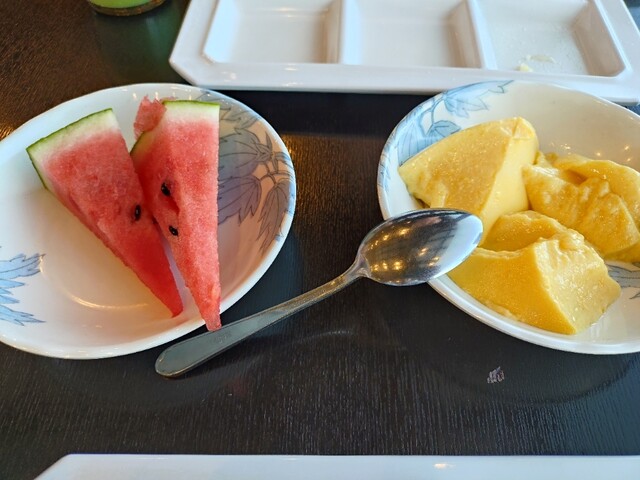 デザートでプリンとスイカ