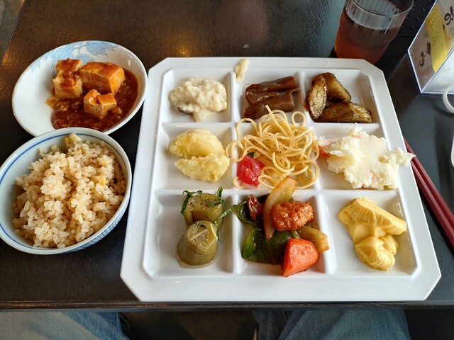 麻婆豆腐、とうもろこし飯