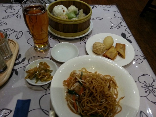 でも、その後、来た点心が、たくさんだった。全部違う種類で、一つずつ!揚げ物(ごまだんご、春巻き、餅あげ)を寄せると