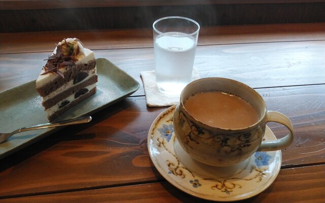 ホットカフェオーレ&アメリカンチェリーケーキ