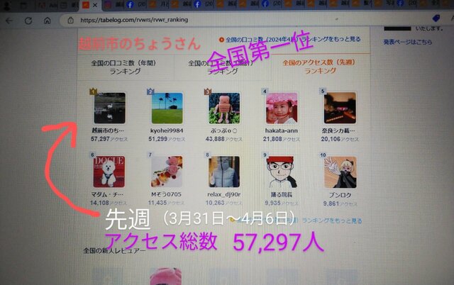食べログアクセス数が全国第一位!!! (2024/03/31)