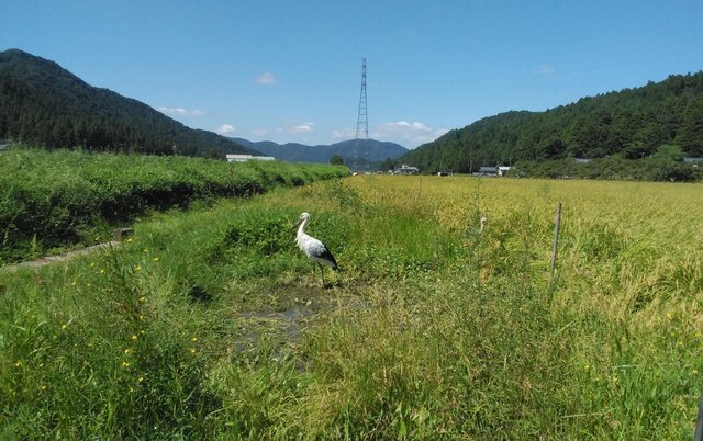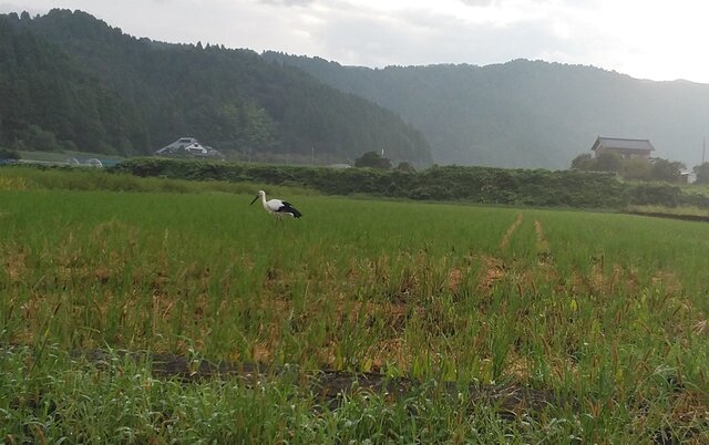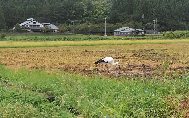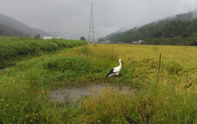 コウノトリ『ゆうきくん』の放鳥 (2025/09/04)