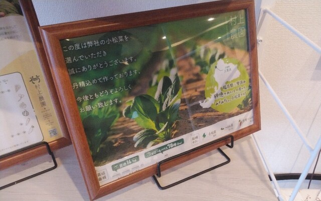 オープンチラシには、『安心と安全を食卓に!毎日食べたくなる美味しいお惣菜を皆さまヘ!』と書いてあります。野菜はなるべく地元契約農家さんから仕入れるよう努力されてるようです。