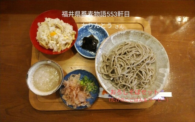 せっかくなので、“おろしそば”だけではなくセットにしました。何と“たけのこごはん”に加えて、食後の“珈琲”も付きますので、かなりお得です。