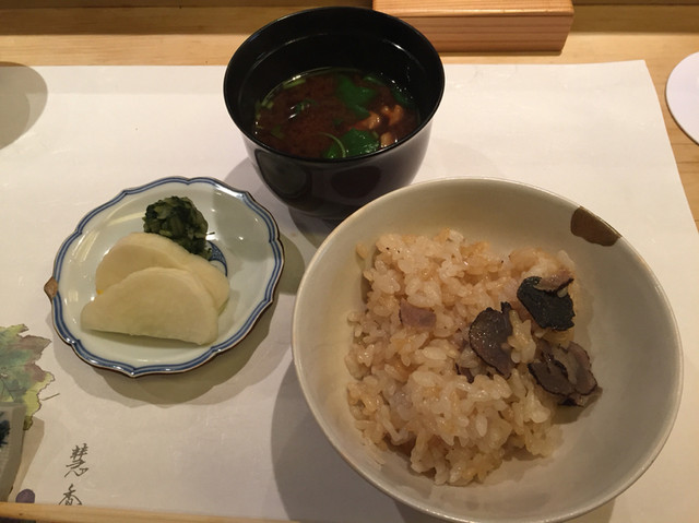 ●トリュフご飯、藻屑蟹の赤出汁、漬物