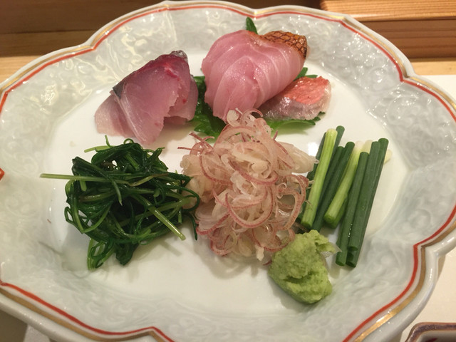 金目鯛とシマアジ 薬味のバリエーションが豊か