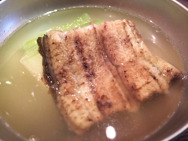 わー、鰻!!これまた大盤振る舞いで、鰻が大きい。出汁であっさりいただくのもいいものですねぇ。黄金に輝く出汁自体も美味。