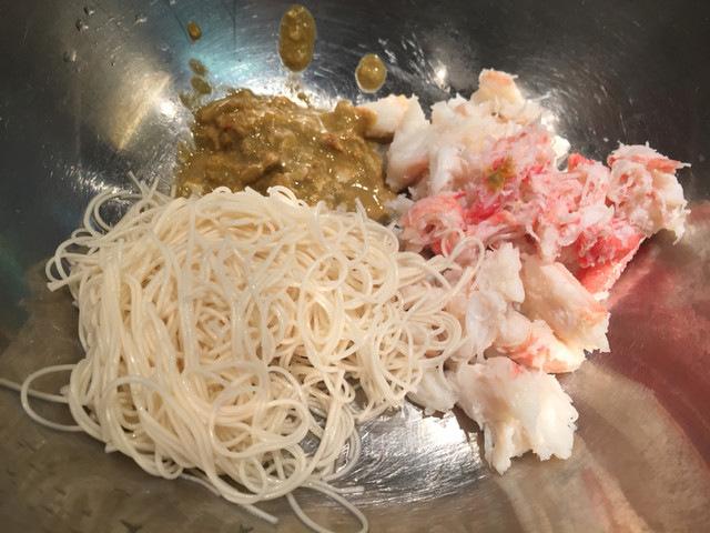 ●毛ガニを和えたそうめん 雲丹 いくら カラスミ キャビア
