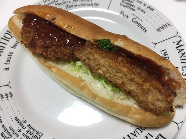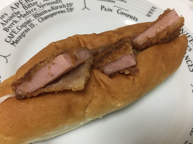 ハムカツが三切れ入ったボリュームコッペサンド。