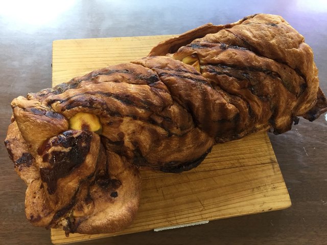 桜のペーストが優しい甘さ。クリームの中には桜の葉が入ってました。生クリームとカスタードクリームが桜クリームを支えていました。甘くて春らしい美味しさ。六本木辺りの高級パン屋にありそうなパンだけど、それだったら400円くらいしそう。この値段はもはや奇跡。
